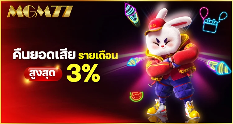 MGM 77 มีเกมคาสิโนออนไลน์หลากหลาย รวมถึงบาคาร่าที่ได้รับความนิยม และเกมสล็อตจากค่ายชั้นนำ ในส่วนของเว็บไซต์ ยังเสนอเครดิตฟรีและโปรโมชั่นที่หลากหลาย ช่วงเวลาที่แนะนำสำหรับการเล่นคือ 12.00 – 19.00 น. เพื่อเพิ่มโอกาสในการทำกำไร อย่างไรก็ตาม ผู้เล่นควรใช้เงินที่ไม่กระทบต่อชีวิตประจำวัน เพื่อให้การเล่นเป็นกิจกรรมที่สนุกสนานและปลอดภัย MGM 77 จึงเป็นทางเลือกที่น่าเชื่อถือสำหรับผู้ที่ต้องการประสบการณ์การเดิมพันที่ดีที่สุด